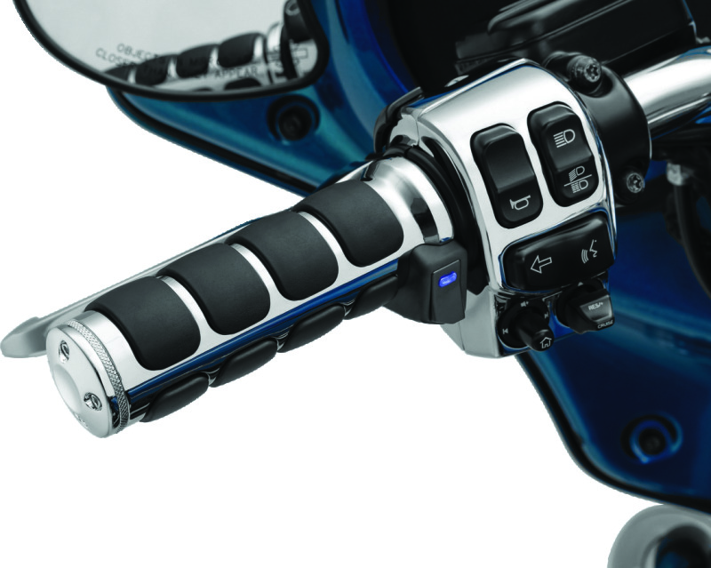 - Bullet Points: Aluminum housings with premium EPDM rubber inserts that won't harden, crack or wear over time*Direct replacement for most throttle-by-wire and dual-cable throttle Harley-Davidson models*5 adjustable heat levels powered and controlled via integrated switch on clutch-side grip*Built-in automatic low-battery shut-off to avoid draining power*Cushioned, vibration-free comfort with excellent grip