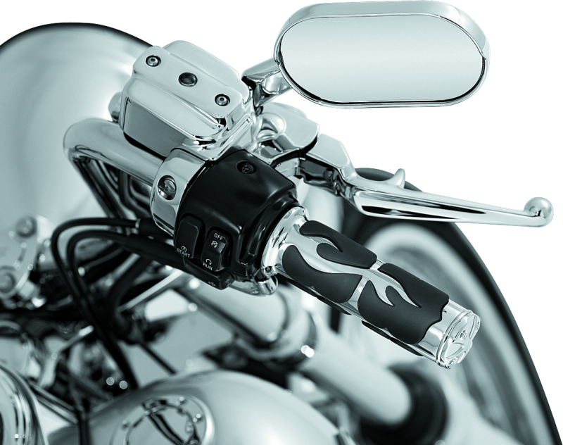 Featuring a unique flamed pattern in the soft and cushy raised rubber pads and finished off with a Maltese Cross emblazoned end cap and smooth trim ring for that additional bad attitude.